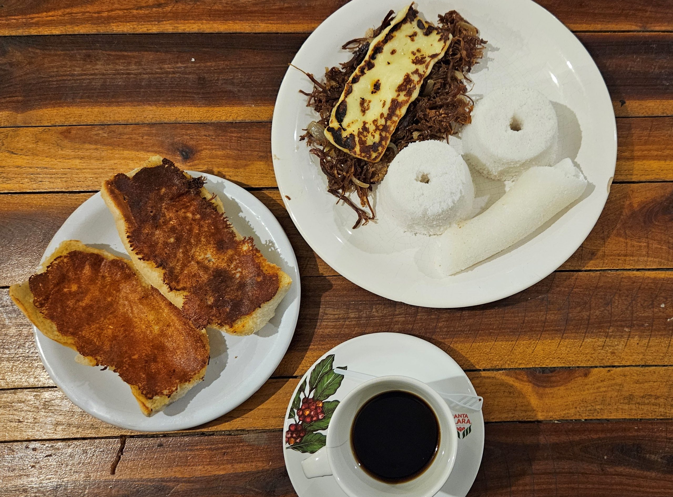 Pão Carroceiro (pão francês com carne de sol e catupiry), cuscuz de arroz, carne de sol e queijo coalho e tapioquinha molhada