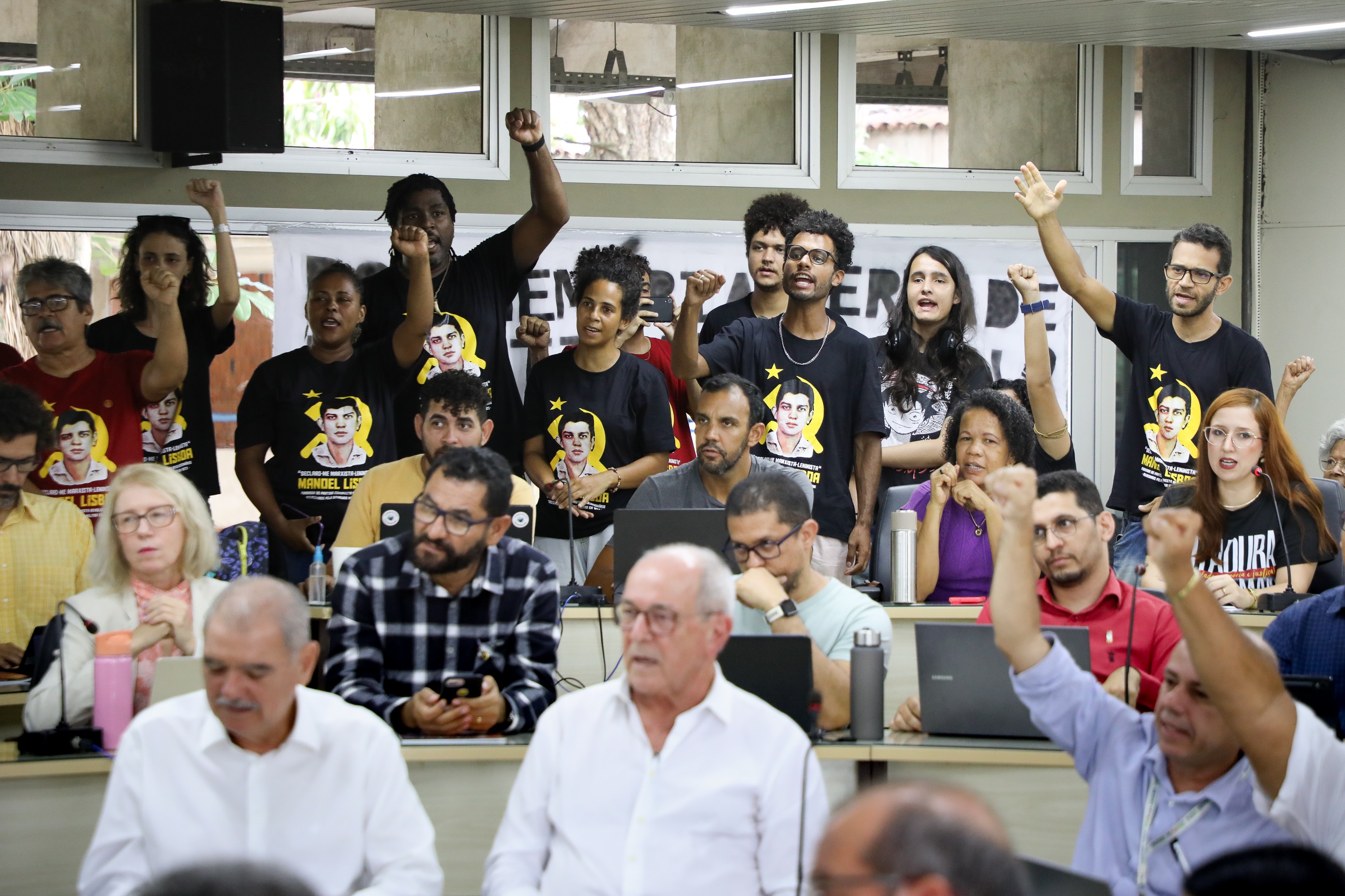 As conselheiras requerentes, Emanuelle Rodrigues, professora do curso de Comunicação Social, e Iracilda Moura, professora do Instituto de Ciências Biológicas e da Saúde (ICBS) e sobrinha de Manoel Lisboa, leram o texto do requerimento, que foi baseado no relatório da Comissão da Verdade. “Consideramos fundamental que a Universidade reveja as posturas que, enquanto instituição de ensino, foram de encontro a sua missão de difundir conhecimento e afrontaram direitos humanos básicos”, defendeu a professora Emanuelle.