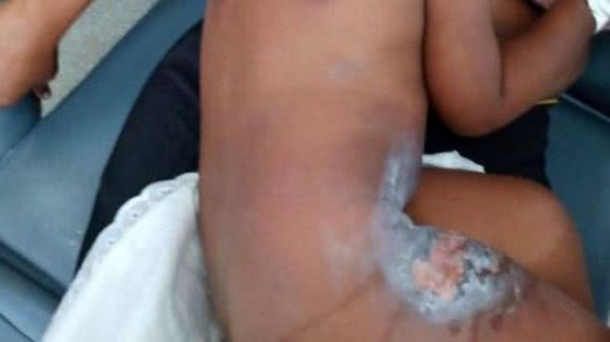 Polícia investiga queimaduras - A mãe do menino contou aos policiais que saiu para trabalhar e deixou a criança sob os cuidados do companheiro. Segundo ela, ao retornar, ele contou que a criança havia se queimado ao tentar pegar uma panela onde ele fritava um ovo.