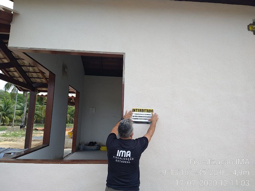 Mais uma construção foi embargada e o proprietário autuado por falta de licença ambiental, dessa vez no município de São Miguel dos Milagres. A ação aconteceu por parte da equipe de fiscalização do Instituto do Meio Ambiente do Estado de Alagoas (IMA/AL) que mantém os plantões e continua com os trabalhos, atuando como serviço essencial neste período de isolamento social em razão da covid-19.