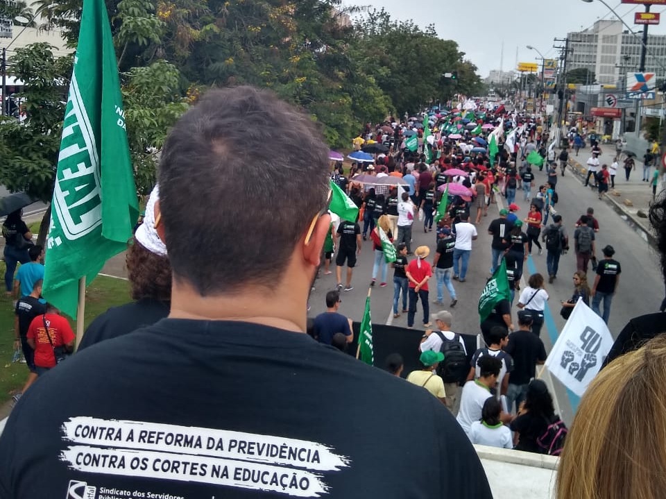 Uma manifestação contra os cortes de investimentos na Educação e contra a reforma da Previdência é realizada na manhã desta terça (13) em Maceió e outras cidades do Brasil. Na capital alagoana, estudantes, servidores públicos e integrantes de movimentos sociais se reuniram em frente ao Centro Educacional de Pesquisa Aplicada (Cepa), no bairro do Farol, de onde saem em caminhada pela Avenida Fernandes Lima em direção ao Centro.