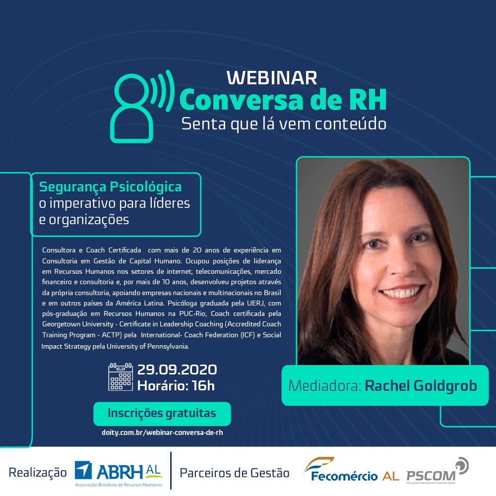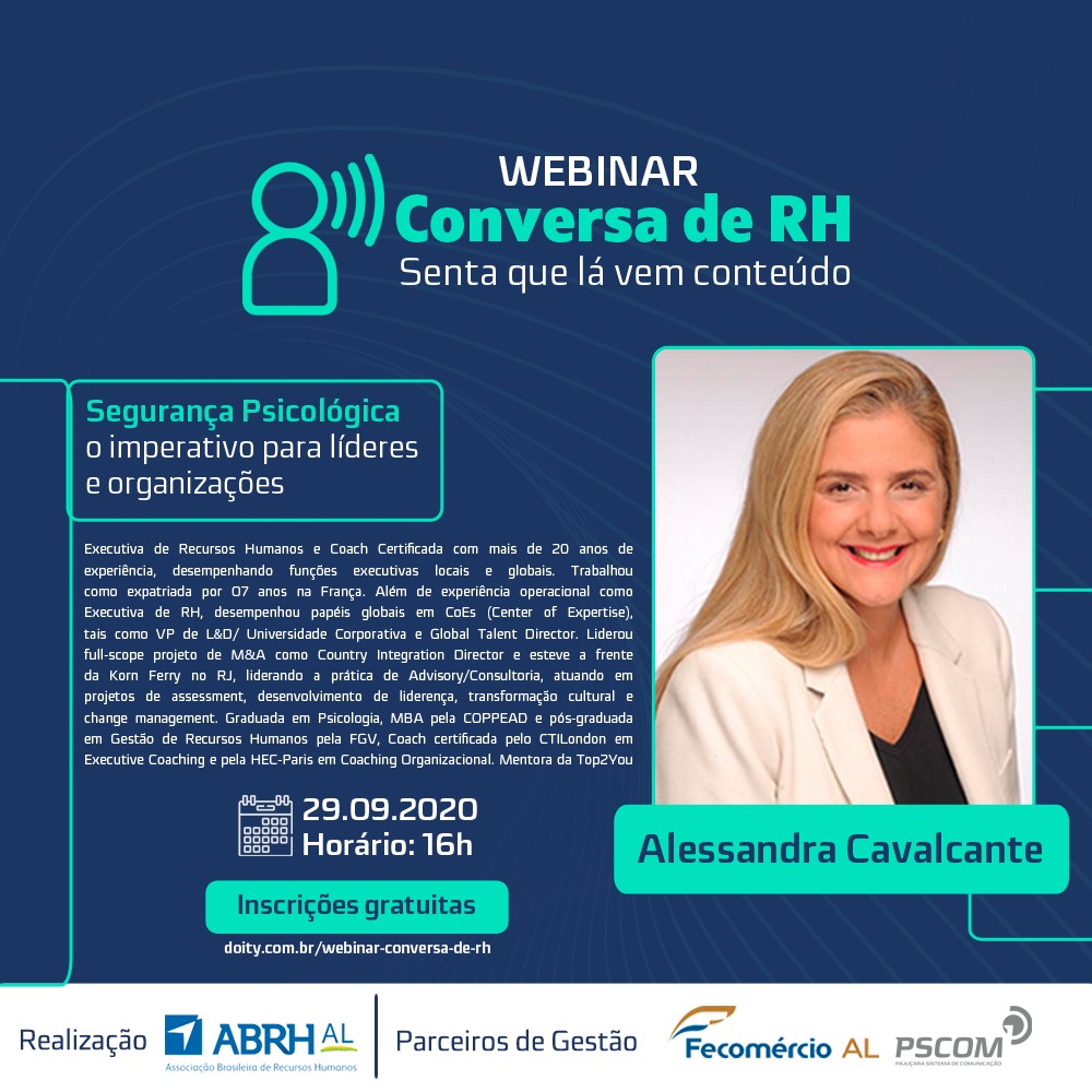 A Associação Brasileira de Recursos Humanos de Alagoas – ABRH AL realiza no dia 29 de setembro o Webinar Conversa de RH com o tema Segurança Psicológica – o imperativo para líderes e organizações. O evento acontecerá na plataforma Google Meet, às 16h.