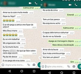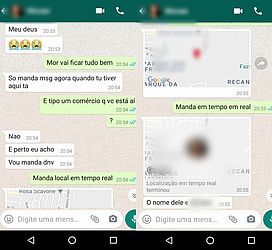 A primeira mensagem encaminhada pela vítima ao namorado foi às 17h08. Cerca de três horas depois, a mulher escreveu que havia sido sequestrada e relatou o medo de ser morta pelo suspeito (veja sequência abaixo).