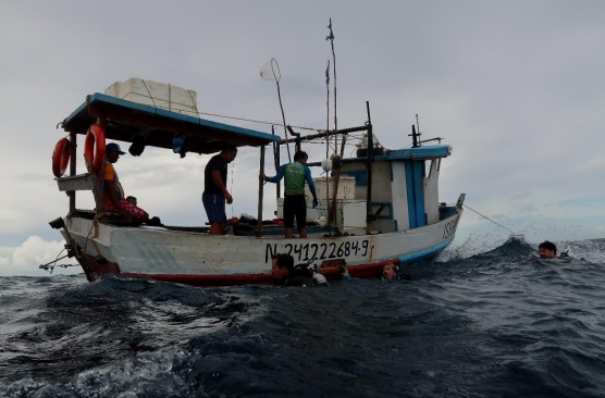 Pesquisadores retornando do primeiro mergulho no naufrágio do Itapagé (Crédito: Cláudio Sampaio/Ufal)