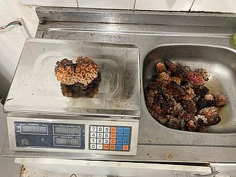 Durante os mergulhos, a equipe registrou milhares de colônias espalhadas pela estrutura do histórico Itapagé, e durante 15 minutos removeu 53 colônias de Coral Sol. Ao todo, 1.377 pólipos e, aproximadamente 2,5 kg, a maior colônia possuía 99 pólipos e 11 cm de diâmetro, foram retirados.