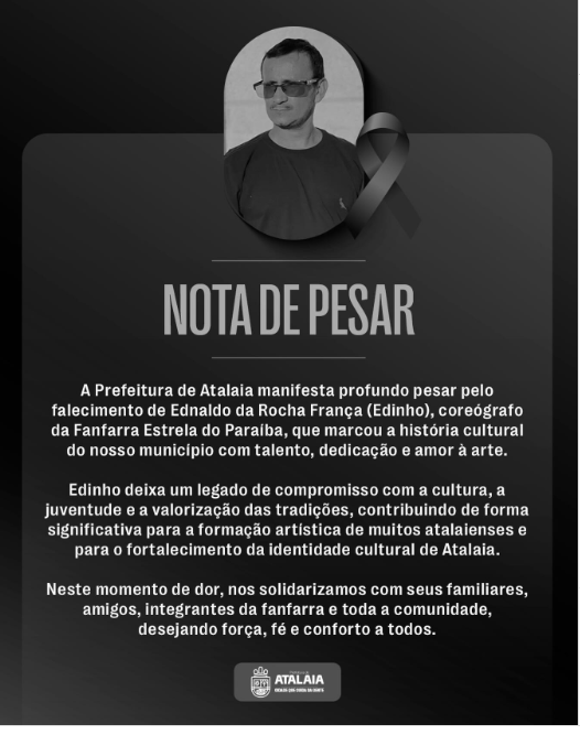 Em nota divulgada nas redes sociais, a Prefeitura de Atalaia manifestou profundo pesar pelo falecimento do coreógrafo e se solidarizou com os familiares.