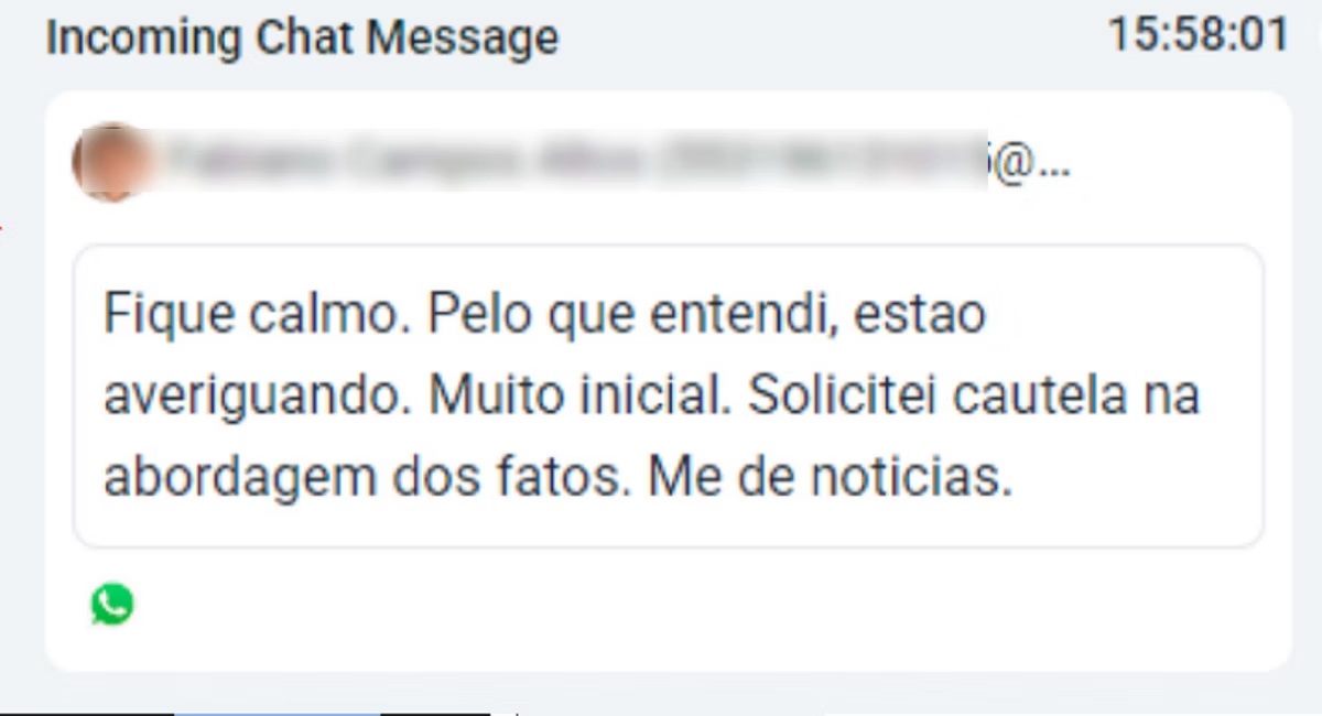 "Renê chega a pedir ao coronel que converse com os policiais militares, o que parece ter acontecido, já que existe uma chamada de pouco mais de dois minutos no mesmo período", completa o inquérito policial. É exatamente após essa chamada que o coronel envia uma mensagem dizendo: "Fique calmo. Pelo que entendi, estão averiguando. Muito inicial. Solicitei cautela na abordagem dos fatos. Me dê notícias".