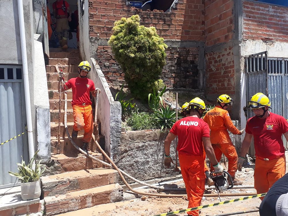 Bbombeiros trabalharam por mais de 5 horas para localizar o corpo da mulher. Foto: Cortesia ao TNH1 / Handson Holanda - TV Pajuçara |