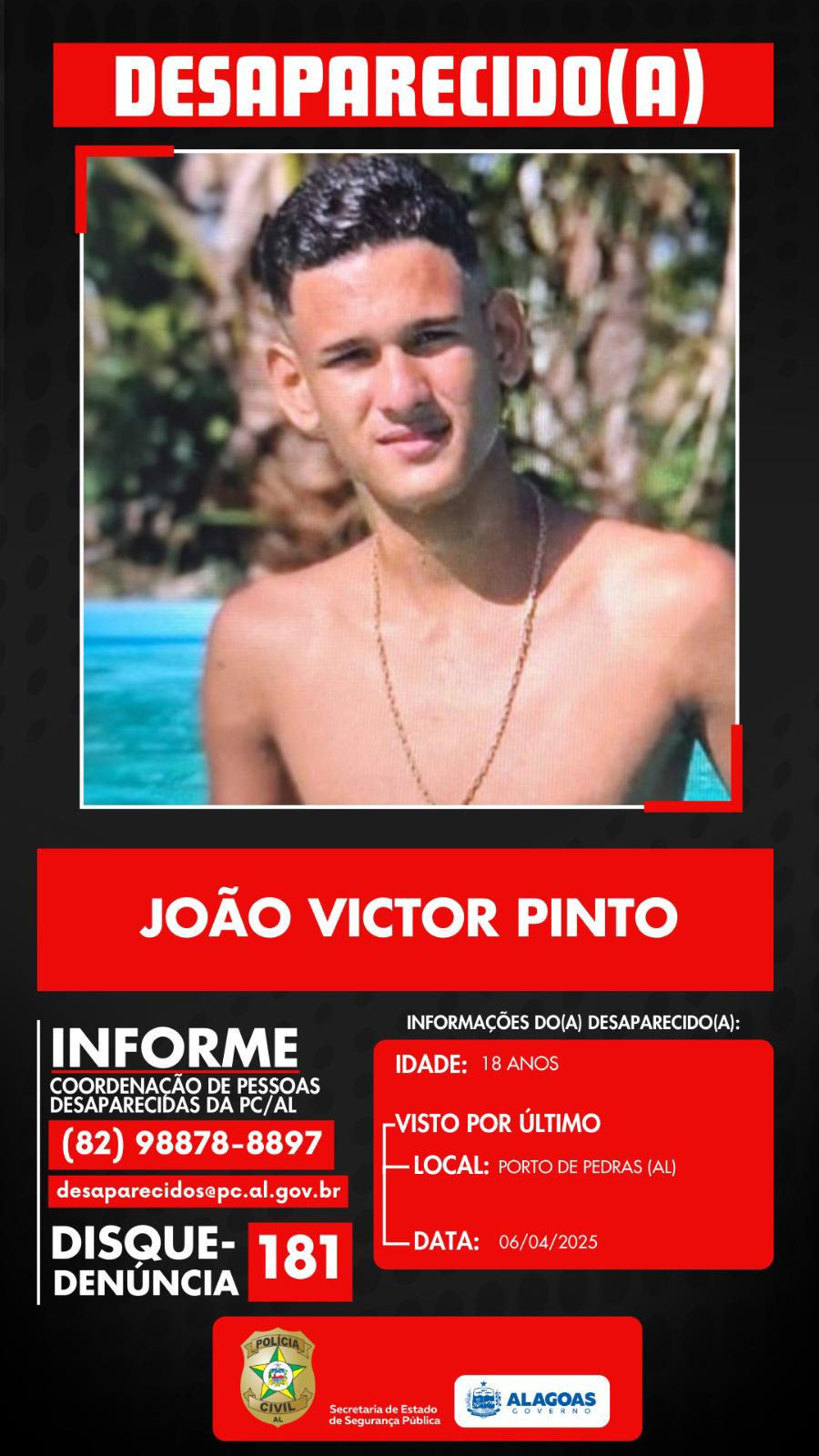 A Polícia Científica de Alagoas confirmou, na tarde desta quarta-feira (3), que o corpo encontrado no Rio Manguaba, em Porto de Pedras, é do servente de pedreiro João Victor Pinto, de 18 anos, que estava desaparecido desde 06 de abril deste ano.