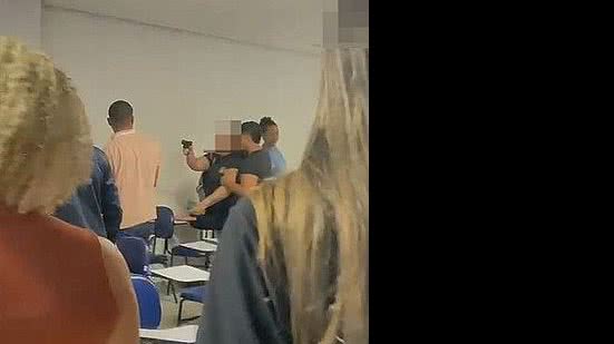 Nesse momento, os colegas de turma interviram e tentaram separá-las, porém a policial sacou a arma e gerou tumulto. Outros estudantes saíram da sala correndo e gritaram por ajuda, à procura dos seguranças da unidade de ensino.