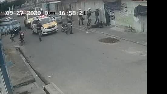 As imagens registradas por uma câmera de segurança mostram o momento em que viaturas da PM param duas pessoas numa motocicleta durante fiscalização. Os agentes descem do automóvel e ordenam para que os ocupantes se afastem do veículo com as mãos colocadas na cabeça. Um policial então empurra um deles e dá um chute no jovem já caído. Logo depois, ele derruba outra pessoa.