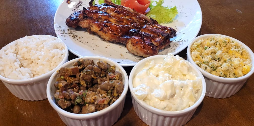Costelinha bovina tem direito a quatro acompanhamentos, como arroz, maionese, feijão caseiro e maravilhosa farofa de ovo