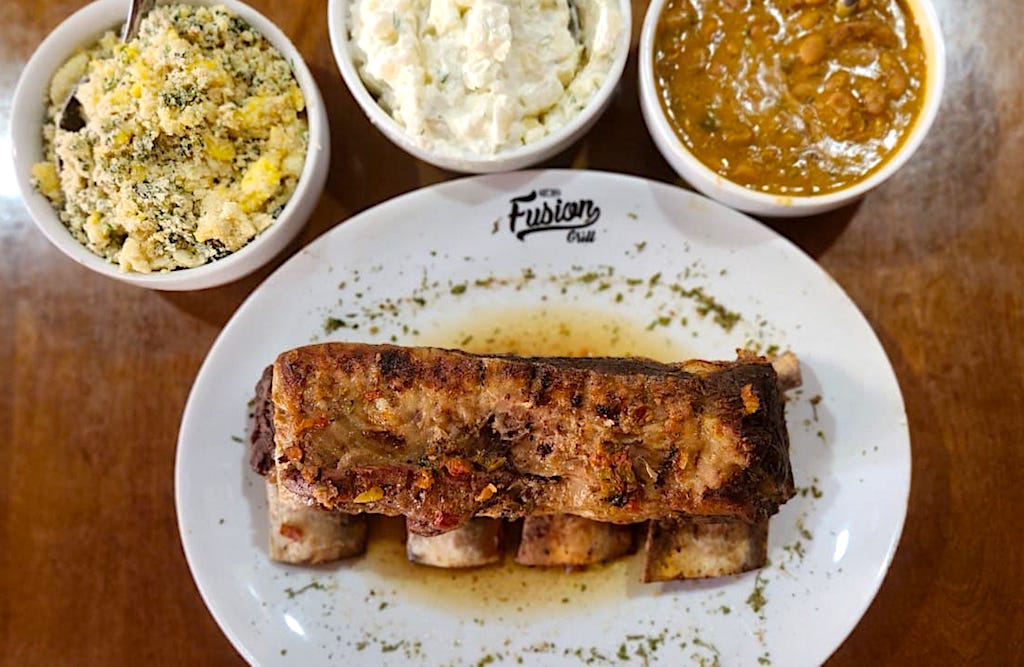 A costelinha bovina é banhada por 24 horas no molho de alho, vinho branco, vinagrete e sal, depois segue até a grelha para ficar mais saborosa, gostosa, e macia ao ponto de soltar os ossinhos. Essa beleza é uma das estrelas do Fusion Grill (@fusiongrillmaceio), do chef Fernando Costa (@fernandocostamaia), que faz no capricho carnes grelhadas é que em outubro próximo celebra 10 anos. A costelinha tem direito a quatro acompanhamentos, eu sempre escolho maionese da casa, feijão caseiro, farofa de ovo e arroz biro biro.
