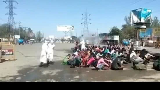 Um grupo de trabalhadores migrantes foi "desinfetado" por pulverização na cidade de Bareilly, no estado indiano de Uttar Pradesh. O incidente ocorreu nessa segunda-feira (30) e gera polêmica.