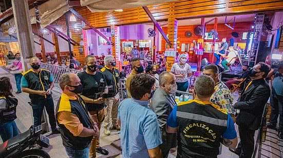 Nas blitz anteriores, dois estabelecimentos foram notificados por descumprirem os protocolos e realizarem eventos com grande número de pessoas, muitas delas de pé, sem respeitar o isolamento.