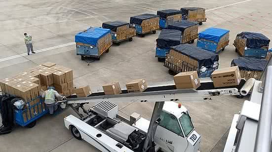 O avião foi fretado pelo Ministério da Infraestrutura, que vai contratar mais de 40 voos para transportar ps volumes para os destinos finais. A carga de 7,942 milhões de máscaras cirúrgicas de três camadas foi transportada em aeronave de passageiros Boeing-777, que aterrissou no Aeroporto Internacional de Guarulhos, em São Paulo.