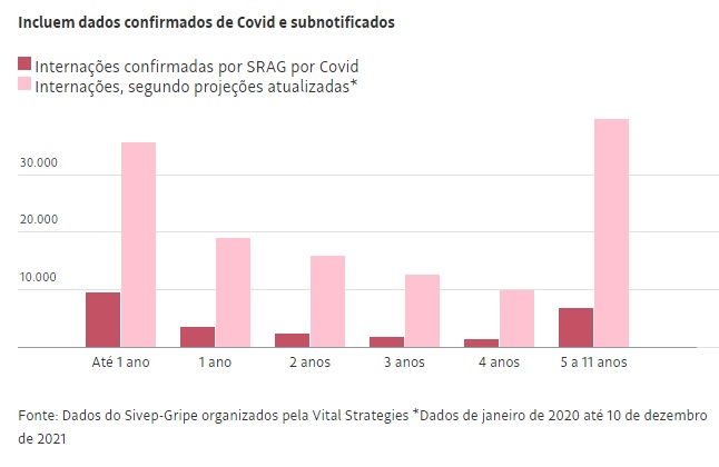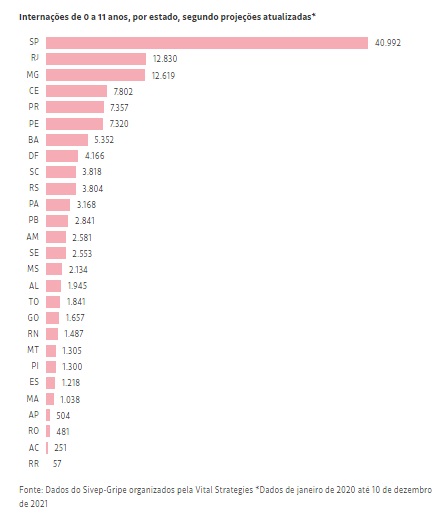Entretanto, o Brasil já pode ter atingido 92.837 internações em crianças de 0 a 4 anos, e 39.584 em crianças de 5 a 11 anos.