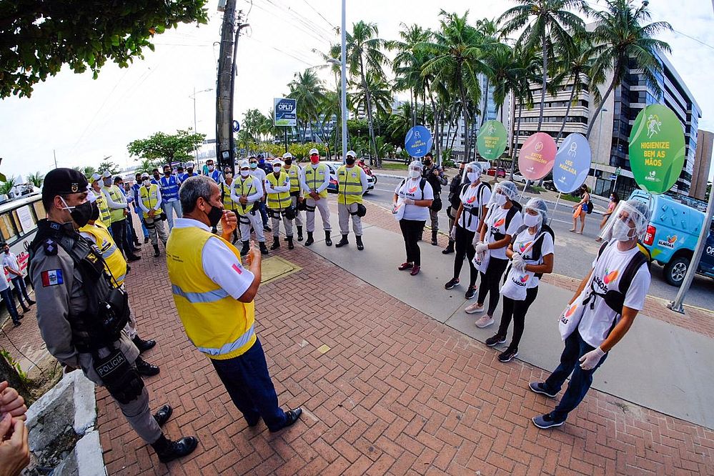 Os índices de contágio por Covid-19 em Alagoas tem decrescido, o que também tem levado à reabertura controlada de estabelecimentos comerciais e espaços de convivência mútua em todo o estado, mas o uso dos equipamentos de proteção individual (EPIs), como as máscaras, continua sendo fundamental e obrigatório. Por isso, o Programa Ronda no Bairro, do Governo do Estado, realizou, junto de outros órgãos, nesta terça-feira (4), mais uma blitz educativa na orla marítima de Maceió, um de seus territórios de atuação.