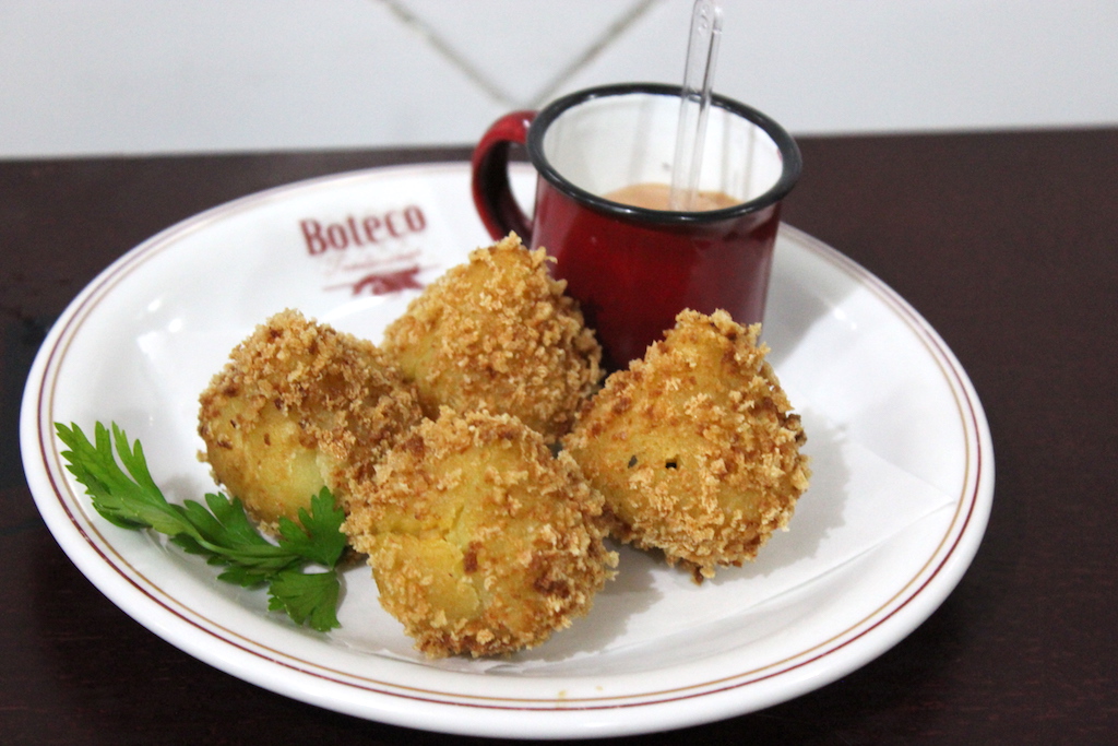 Tradição – A coxinha de galinha caipira também tem presença marcante no Boteco 082. Preparada de forma tradicional, a carne é cozida, desfiada, e o caldo da penosa é misturado na massa de farinha de trigo.