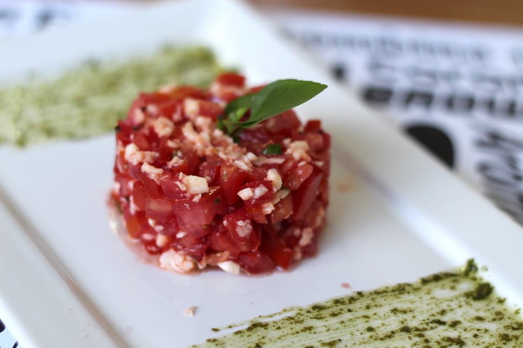 Tartar de tomate tomate, entrada leve do Executivo da Lila do mês de agosto