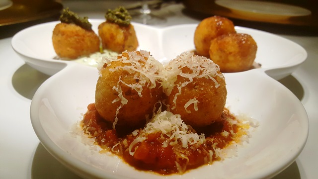 Revelação – Quando olhei para os bolinhos de arroz não imaginei que fossem tão bons. Me surpreendeu. Os grãos bem temperados são abarcados em três molhos distintos: de tomate com bacon, creme de queijo com ervas, e mostrada Dijon com mel de engenho. Sensacional. Ótima intervenção alagoana.