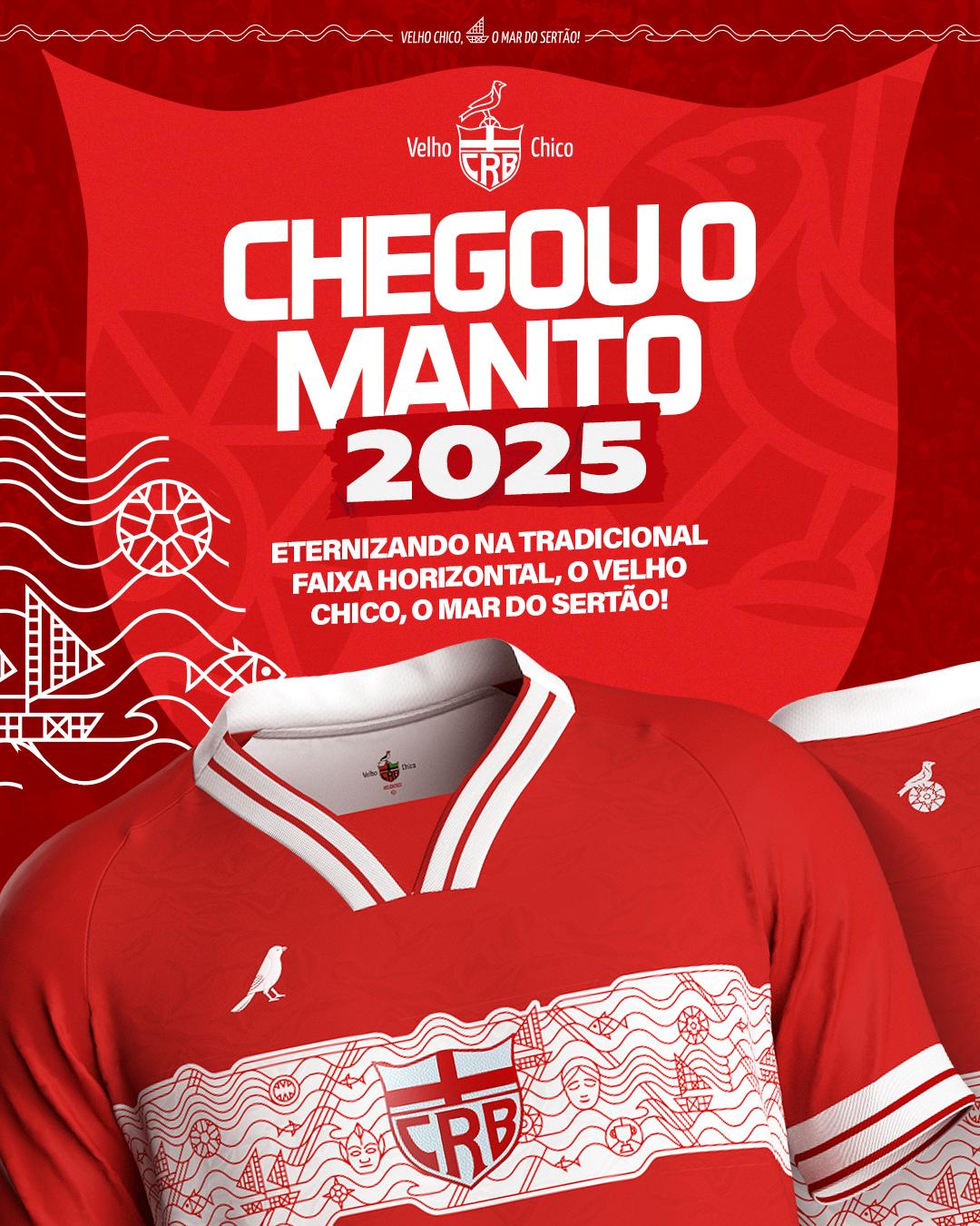 O Clube de Regatas Brasil divulgou imagens da nova camisa número 2 que será utilizada na temporada de 2025. O lançamento da coleção “Velho Chico” acontece nessa quinta-feira (10), às 19h, quando serão apresentados os uniformes 1 e 3, os dos goleiros, os de treino, aquecimento, viagem e comissão técnica.