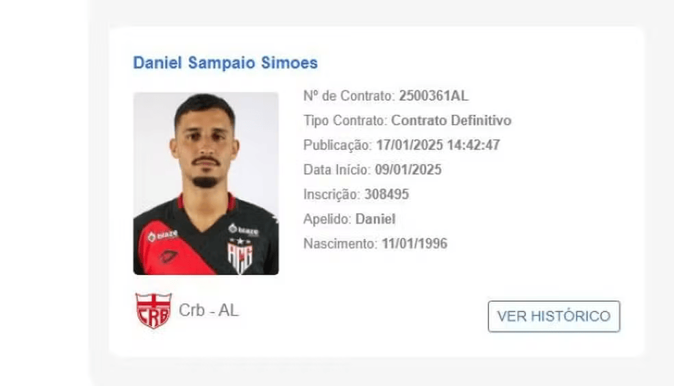 O meia Daniel está liberado para estrear pelo CRB. O nome do jogador foi publicado no Boletim Informativo Diário (BID) da CBF nesta sexta-feira (17) e poderá ser inscrito no Alagoano.