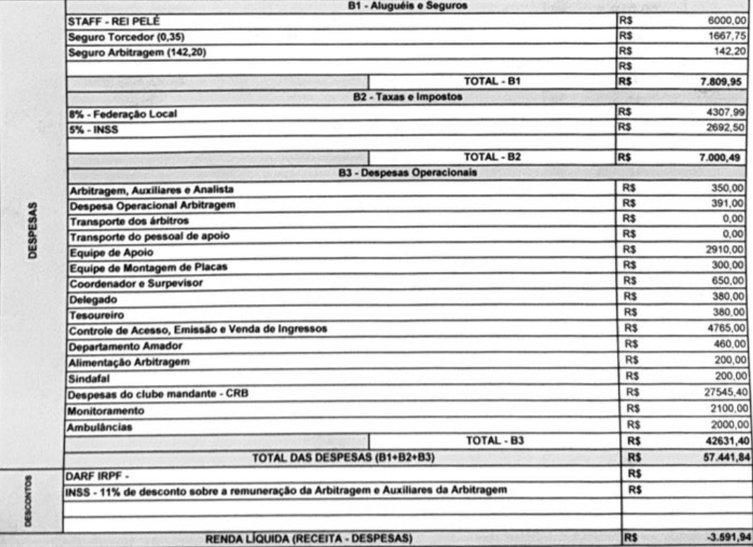 Entre os custos estão despesas com monitoramento, controle de acesso e emissão de ingressos, equipe de apoio, ambulância e outros serviços essenciais para a realização da partida.