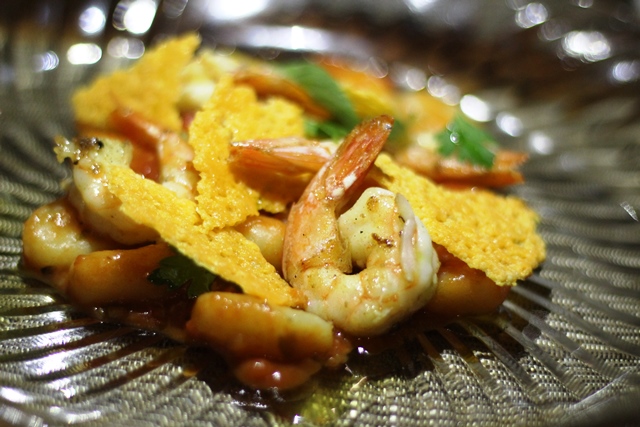 Reino – O camarão grelhado continua seu estrelato no restaurante Sur. O crustáceo é misturado ao nhoque de batata no molho tomate, manteiga de garrafa e azeite de limão siciliano. Destaque para a tela de queijo do reino, que mandou bem no crocante da receita.