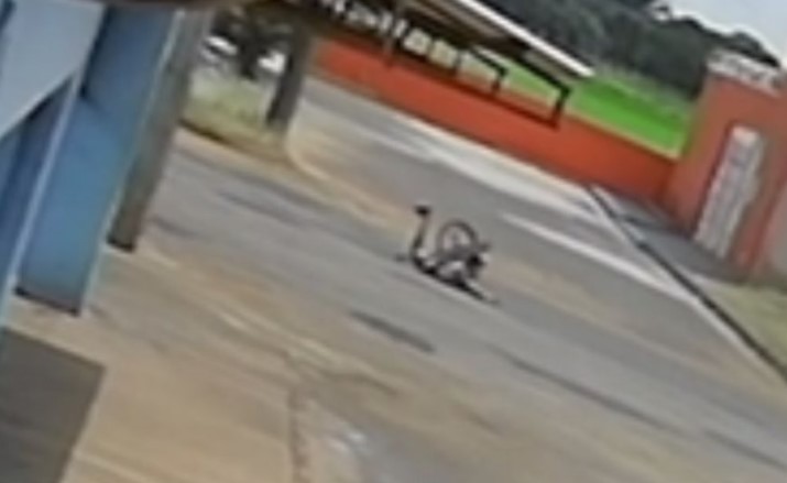 Um menino de 9 anos caiu de bicicleta e ficou com uma das rodas presa no crânio em Uberaba, no Triângulo Mineiro. Imagens de câmeras de segurança registraram o acidente. A criança está pedalando no meio da rua quando sedesequilibra.
