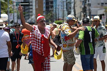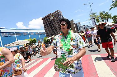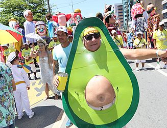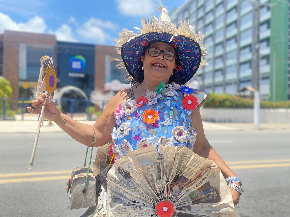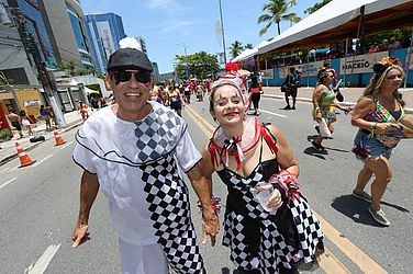 Nem o calor, impediu Dona Marluce Soares de se jogar na folia fantasiada. “Há 25 anos que marco presença todo ano. Eu já tinha a ideia em mente e minha colega Noélia produziu. Calorzão está grande, mas pela fantasia a gente faz tudo. Está lindo! O que importa é se divertir.”