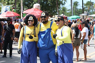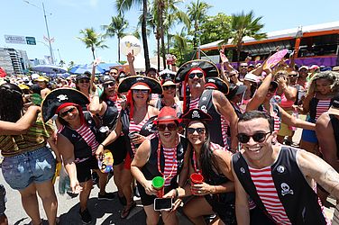 Comemorando 25 anos, o Bloco Pinto da Madrugada arrastou milhares de pessoas e inspirou foliões a capricharem nas fantasias de Carnaval, neste sábado (03). De crianças, a grupos de amigos e famílias inteiras, a criatividade invadiu as ruas da orla de Maceió.