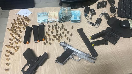 Com ele, a polícia encontrou documentos falsos, armas, carregadores, uma grande quantidade de dinheiro e 9 veículos