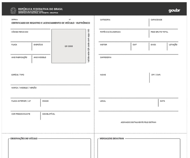 Confira o modelo no novo CRLV-e: