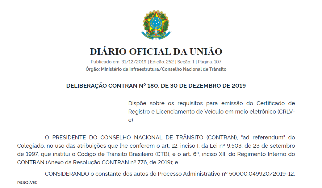 A evolução só foi possível após uma deliberação do DENATRAN do dia 30 de dezembro de 2019 que determinou um novo modelo do documento com QR Code e que poderá ser impresso em casa. Clique aqui para ler o decreto.