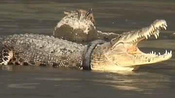 Herói do crocodilo receberá recompensa pelo resgate - Conservacionistas acreditam que alguém pode ter deliberadamente colocado o pneu ao redor do pescoço do crocodilo em uma tentativa fracassada de prendê-lo como um animal de estimação.