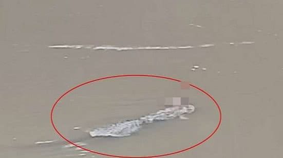 Um crocodilo foi visto nadando no rio Dhadhar (Gujarat, Índia) com o cadáver de um homem na boca.