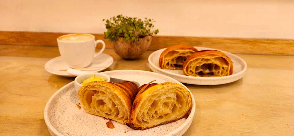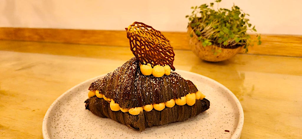 Detalhe: Croissant black é amor à primeira mordida, e vejam quantas crateras, perfeito