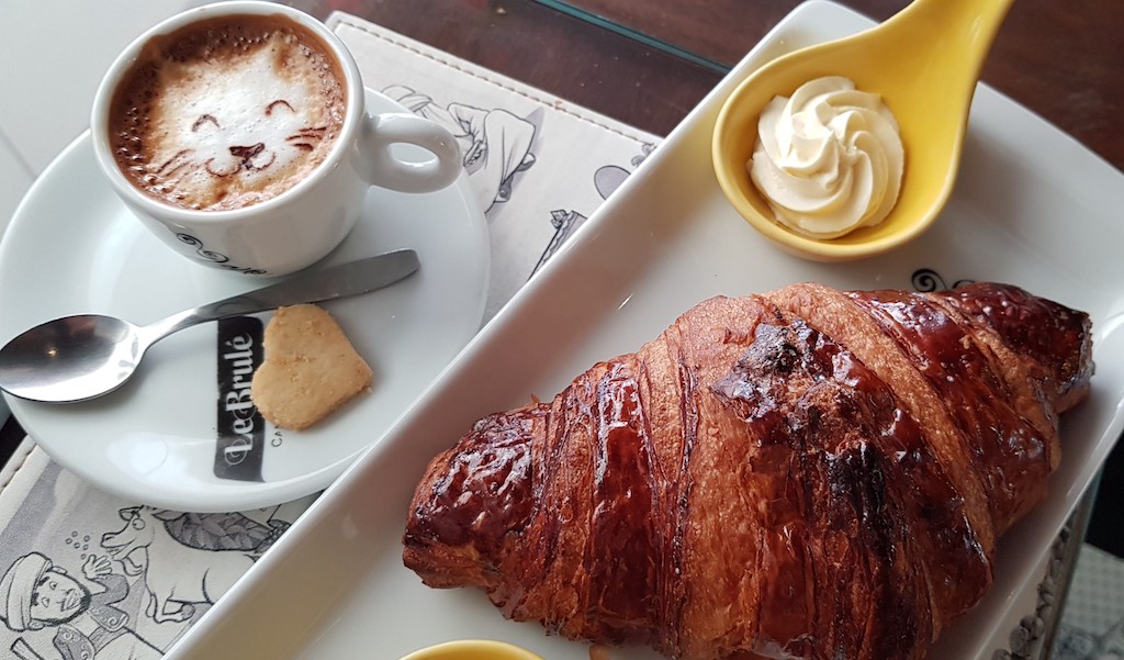 Croissant salgado com requeijão, geleia e um bom café do Lé Brule