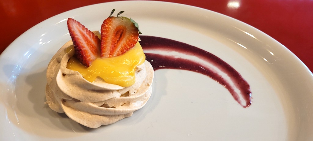 Pavlova, sobremesa com uma base de merengue assado com um recheio de creme de limão