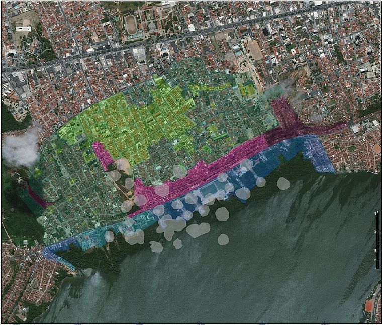 Para o “Setor 2.01” (azul escuro), a recomendação é de monitoramento, podendo vir a ocorrer realocação de moradores de edificações ou de áreas inteiras.
