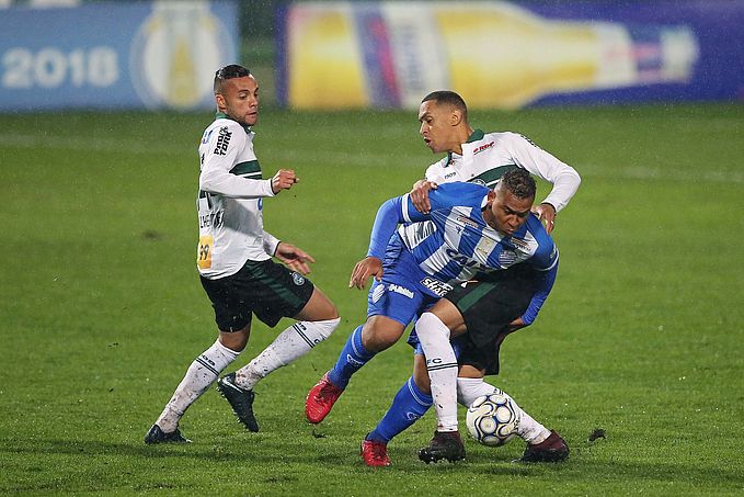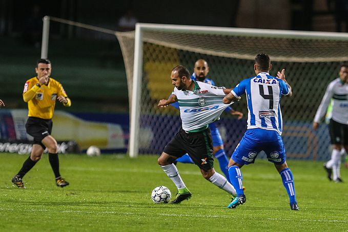 A partida tinha tudo para ser amarrada, sonolenta. Fortes chuvas atingiram o Estádio Couto Pereira e deixaram o gramado encharcado. Coritiba e CSA, no entanto, quebraram a previsão. Logo aos oito minutos, Matheus Lopes fez lançamento longo, Walter ajeitou com o peito e Didira acertou um foguete de fora da área para abrir o placar. Um minuto depois, o Coxa deu a resposta. Guilherme Parede tentou uma vez, parou em Frigeri e, na segunda oportunidade, rolou para Chiquinho chutar alto e empatar.