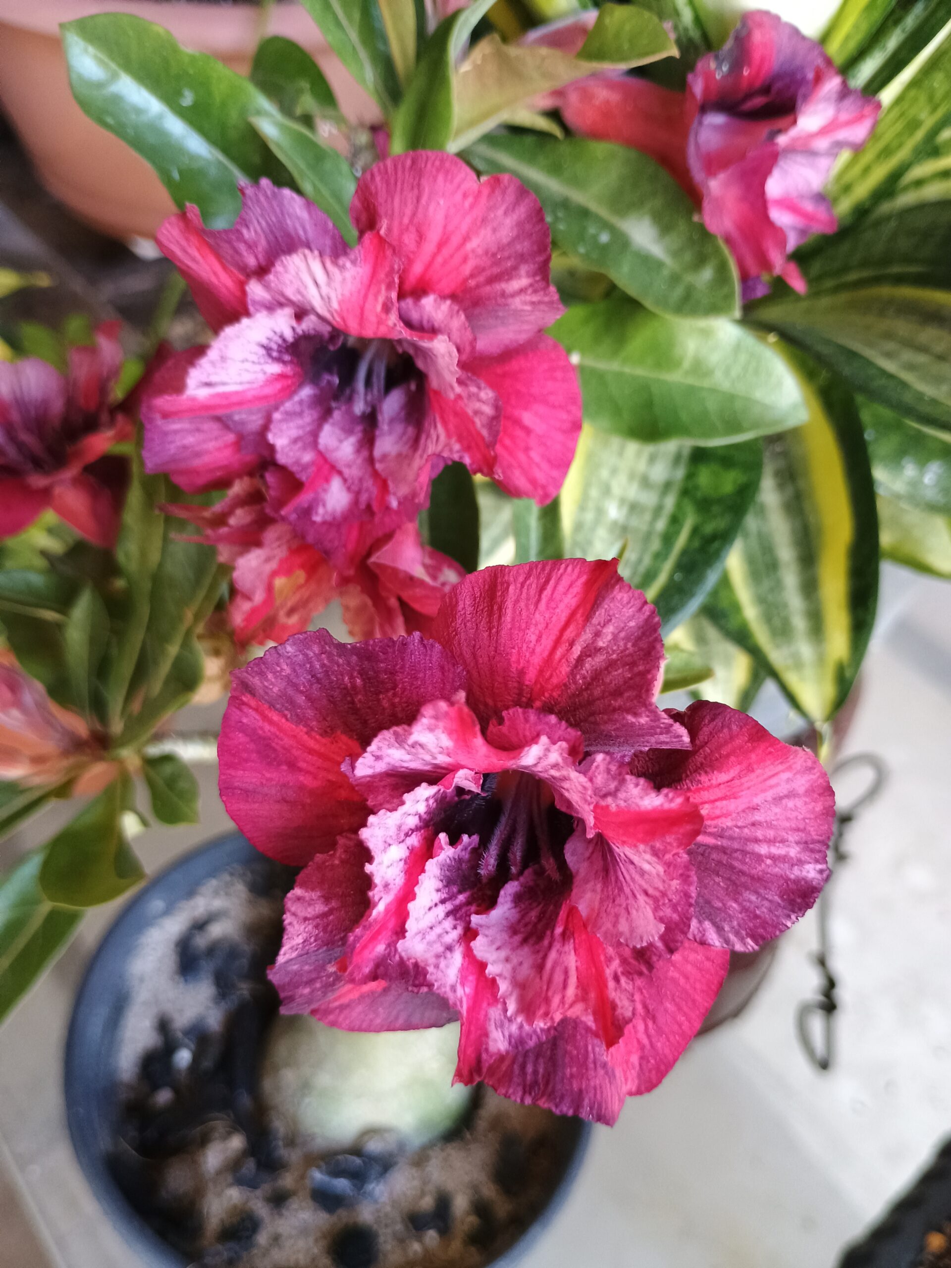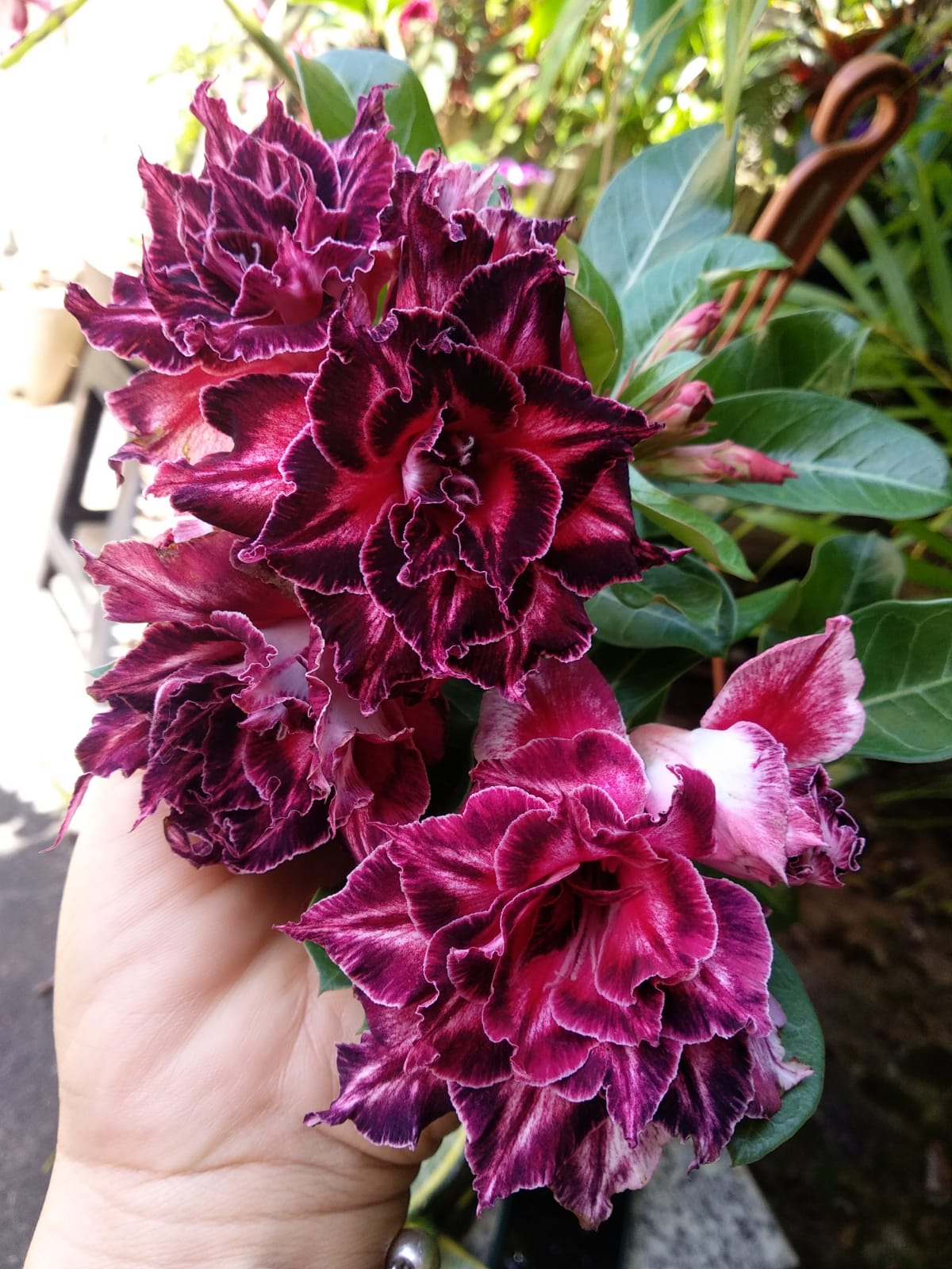 Outro ponto importante é a rega durante a floração. Evite excessos, pois o acúmulo de água pode prejudicar as raízes. Ao mesmo tempo, não permita que o solo fique muito seco. Um equilíbrio cuidadoso na rega é essencial para o sucesso da floração, o ideal é fazer o teste do palito (ou dedo) e verificar o momento ideal de colocar água na sua rosa do deserto.