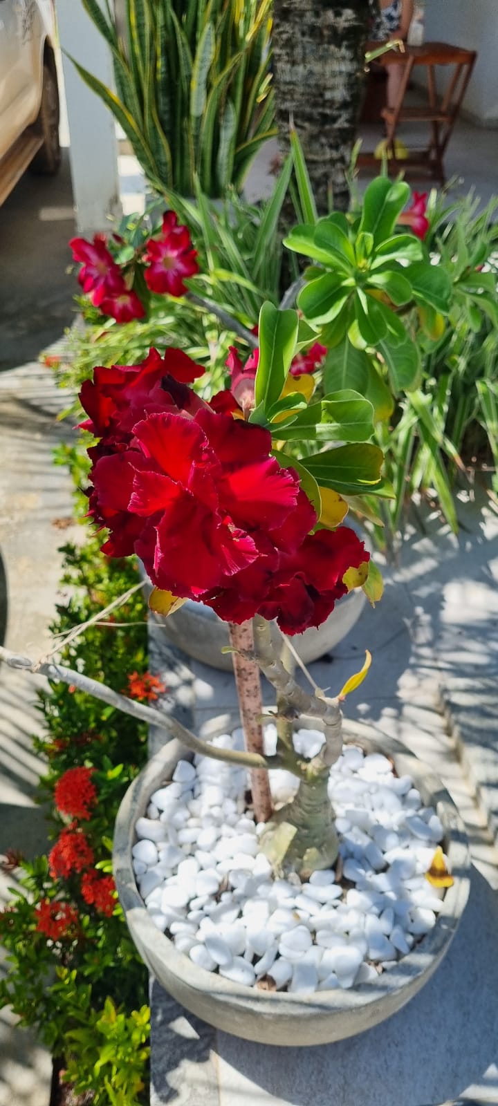 Realize podas leves durante a floração para remover partes danificadas e estimular o crescimento saudável. Evite podas drásticas que possam impactar negativamente a planta durante esse período sensível. Novamente o equilíbrio é essencial para garantir que a sua rosa do deserto floresça em maior intensidade e por mais tempo.