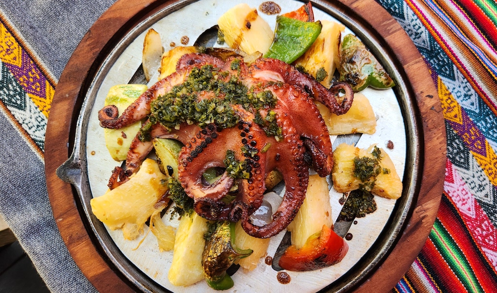 Polvo na chapa com temperos peruanos