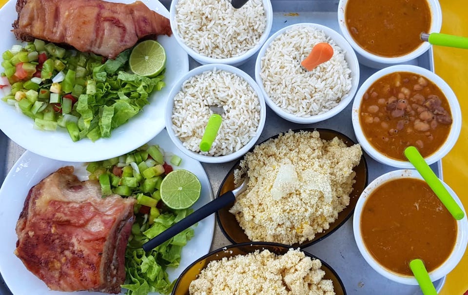 Almoço família: costela suína, feijão caseiro, arroz e farofa do Tonho