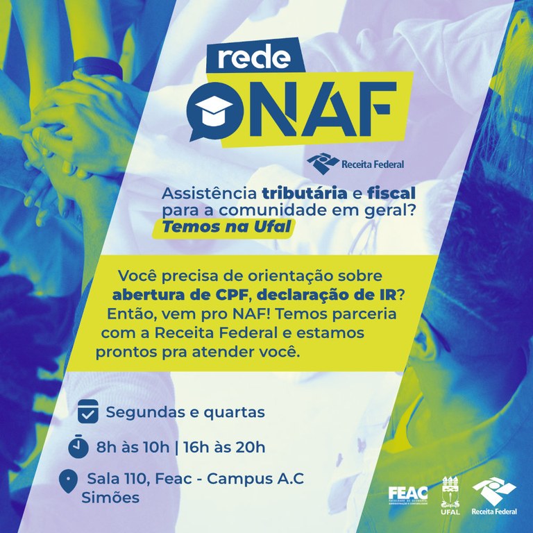 A partir do dia 4 de setembro, a Universidade Federal de Alagoas (Ufal) vai oferecer alguns serviços em parceria com a Receita Federal por meio do Núcleo de Apoio Contábil e Fiscal (NAF). Regularização e abertura de CPF; Cadastro e manuseio do gov.br; e revisão de declarações da pessoa física são alguns exemplos do que a comunidade acadêmica e a do entorno do Campus A.C. Simões poderão ter acesso.
