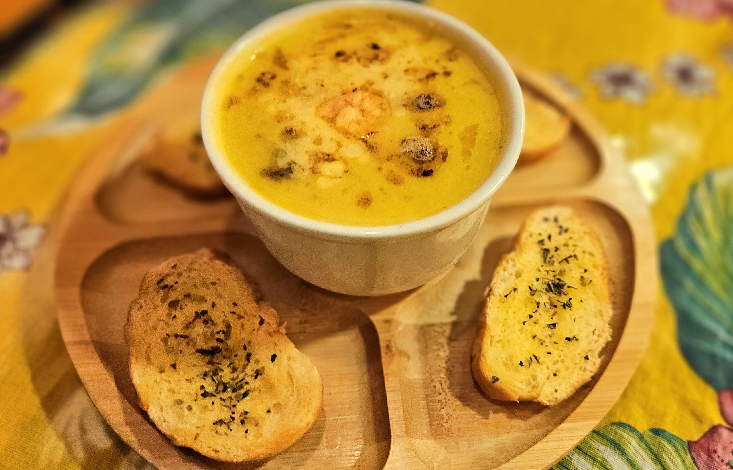 Caldinho de camarão com torradas