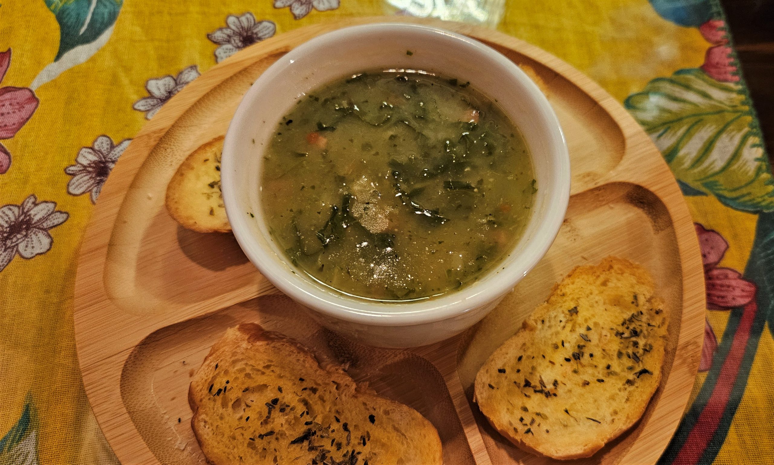 Porção generosa do caldinho verde do Maná Nordestino