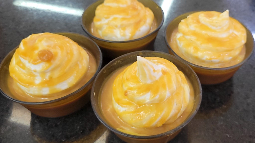 E ainda tem o flutuante individual, a sobremesa gelada feita com claras de neves que é um espetáculo, e na Danúbio a receita tem todo um ritual! À base de claras de neve e limão, quando ela sai do forno recebe o caramelo (caseiro), vai para geladeira, e por fim ganha um creme de leite condensado e outros ingredientes. Eu não sou fã de doces, mas esse é de tirar o chapéu. Tem a torta de limão, também na medida certa, para uma pessoa ser feliz.